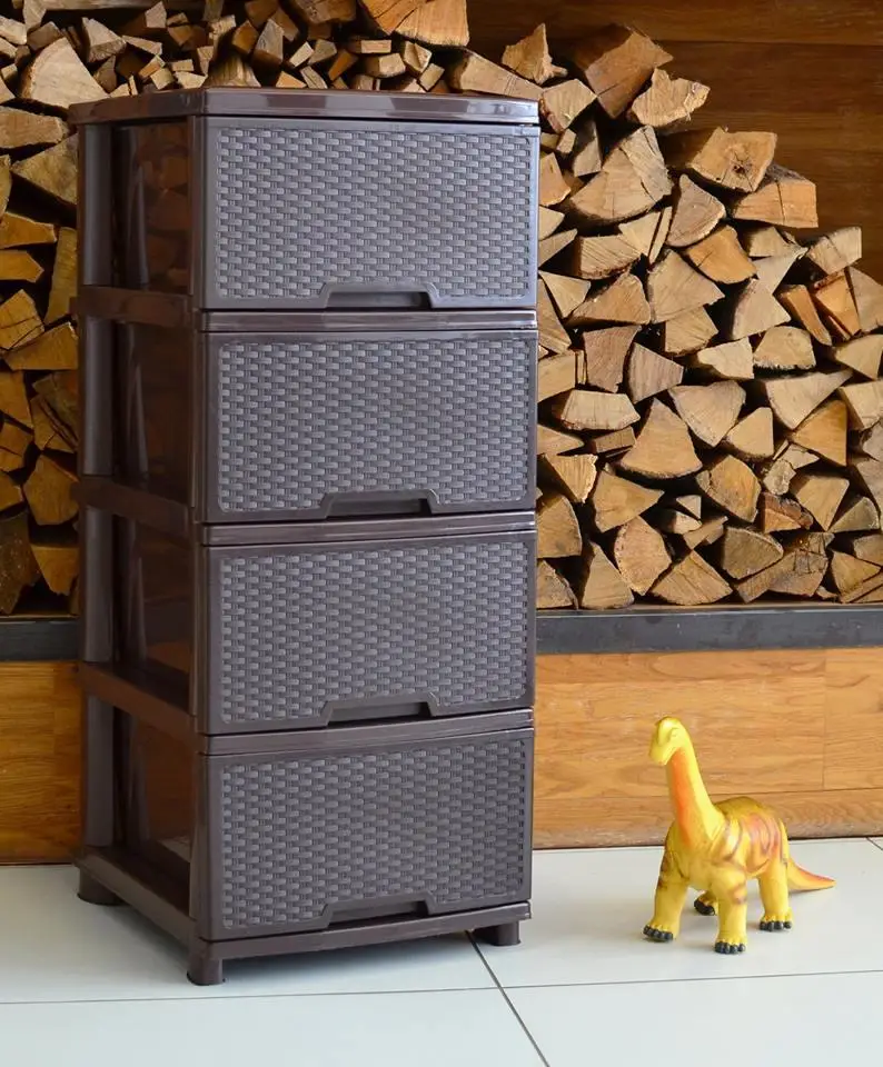 Դարակ (կամոդ) 4 դարակով ` նախատեսված է որպես զգեստապահարան, փոքր կենցաղային իրեր, փաստաթղթեր, մանկական խաղալիքներ, գրենական պիտույքներ, կարի պարագաներ և ցանկացած այլ կենցաղային իրեր պահելու համար: Հաշվի առնելով, որ պլաստմասը չի փոխանցում խոնավություն, այն կարելի է տեղադրել լոգարանում կամ խոհանոցում: Նրա դասական տեսքը ներդաշնակորեն կլրացնի մասնագիտական աշխատավայրը: Զգեստապահարան հավաքովի ունի 4 դարակ։ Պատրաստված է մի քանի գունային տարբերակներով։ Նյութը պոլիպրոպիլեն է, մեկ տուփի համար թույլատրելի քաշը չպետք է գերազանցի 5 կիլոգրամը: Հավաքված կառուցվածքի չափերը 46,5 x 39,5 x 95,5 սմ են: երկարակյաց, հուսալի։ Դարակաշարը կդառնա ցանկացած սենյակի ինտերիերի իսկական զարդարանք: