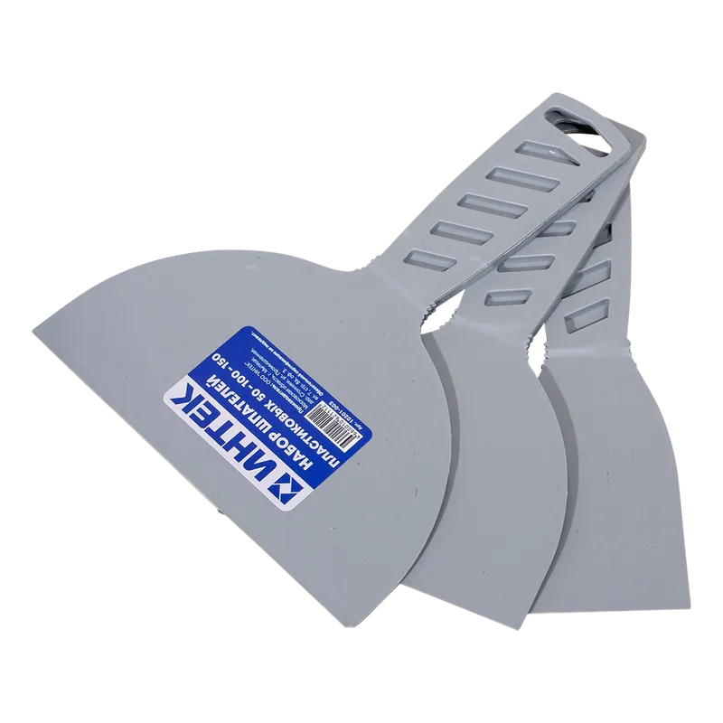 Պլաստիկ շպատելի հավաքածու 3 հատ, 50,100,150 մմ : պատրաստված է բարձր ամրության ճկուն պլաստիկից: Գործիքների փոքր չափը և ճկունությունը թույլ են տալիս ավելի ճշգրիտ կիրառել լուծումը: Օգտագործվում է կարերի և ճաքերի փակման, սալիկների ճաքերի և այլ փոքր աշխատանքների համար: