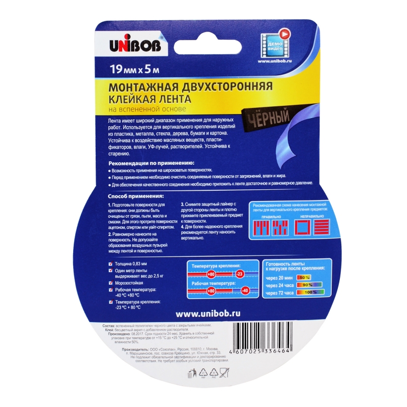 Փրփուր հիմքով սև գույնի կպչուն ժապավենը ունի կիրառման լայն շրջանակ ներքին աշխատանքների համար: Կատարյալ է պլաստմասսայից, թղթից, ստվարաթղթից, մետաղից պատրաստված արտադրանքի ուղղահայաց ամրացման և հայելիների և ապակիների ժամանակավոր ամրացման համար:Ժապավենը օգտագործվում է որպես եղունգների, պտուտակների և սոսինձի այլընտրանք: